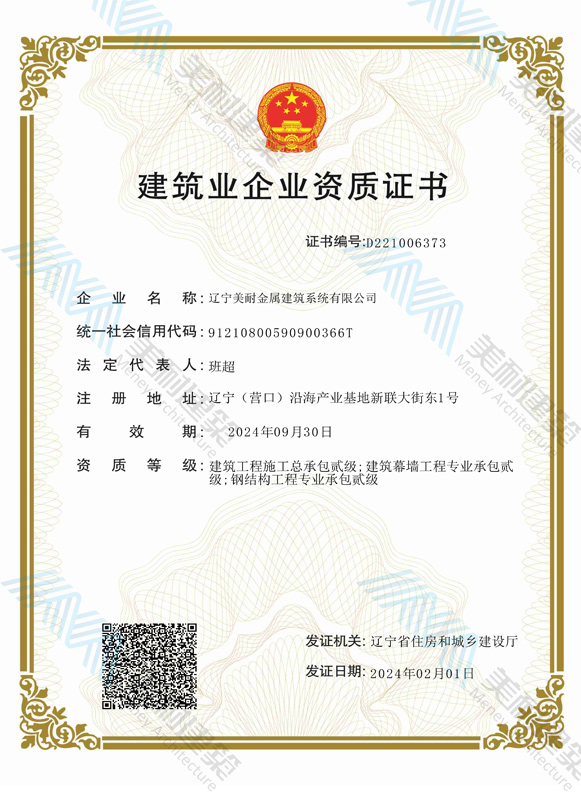 遼寧美耐金屬建筑系統(tǒng)有限公司位于遼寧(營口)沿海產(chǎn)業(yè)基地,專注于預(yù)制金屬建筑系統(tǒng)領(lǐng)域,是一家集工業(yè)建筑設(shè)計(jì)、制作、施工及相關(guān)的技術(shù)咨詢與服務(wù)為一體的綜合性服務(wù)企業(yè)。作為國家鋼結(jié)構(gòu)協(xié)會(huì)會(huì)員、中國建筑金屬結(jié)構(gòu)協(xié)會(huì)會(huì)員單位與國家高新技術(shù)企業(yè),美耐建筑集建筑工程施工總承包、鋼結(jié)構(gòu)工程專業(yè)承包等多種資質(zhì)于一身,并擁有22項(xiàng)鋼結(jié)構(gòu)建筑領(lǐng)域?qū)@?項(xiàng)軟件著作權(quán)。